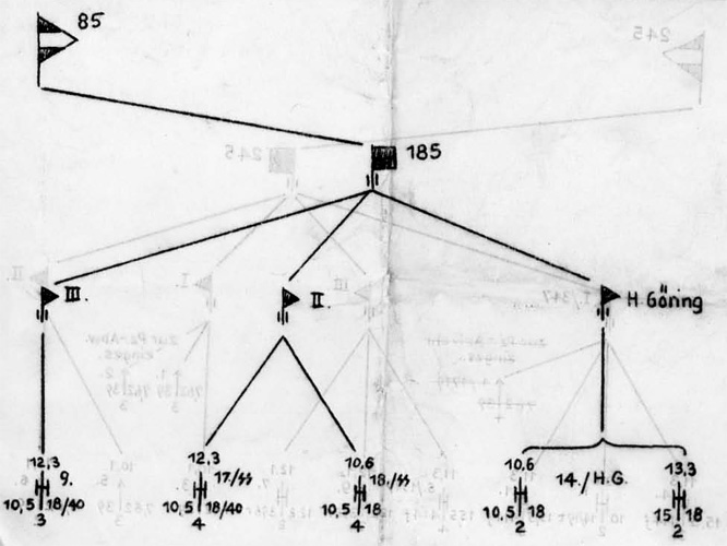 Feldpostnummern ab März 1944: Die Einheiten wurden als Teile vom Artillerie-Regiment 185 in der Feldpostübersicht eingetragen. Zuerst wurden der Regimentsstab und die II. Abteilung am 16. März 1944 eingetragen. Am 24. März 1944 folgte die I. Abteilung. Am 11. April 1944 wurde durch Umbenennung vom Regimentsstab Artillerie-Regiment 340 ein neuer Regimentsstab eingetragen. Am 6. Juni 1944 wurde der bisherige Regimentsstab zur III. Abteilung umbenannt. Am 2. April 1945 wurden die I. und die II. Abteilung gestrichen. Die III. Abteilung wurde am 14. April 1945 gestrichen. Am 2. April 1945 wurde wieder das ganze Regiment bei neuen Nummern eingetragen. Der alte Regimentsstab wurde weder umbenannt noch gestrichen.