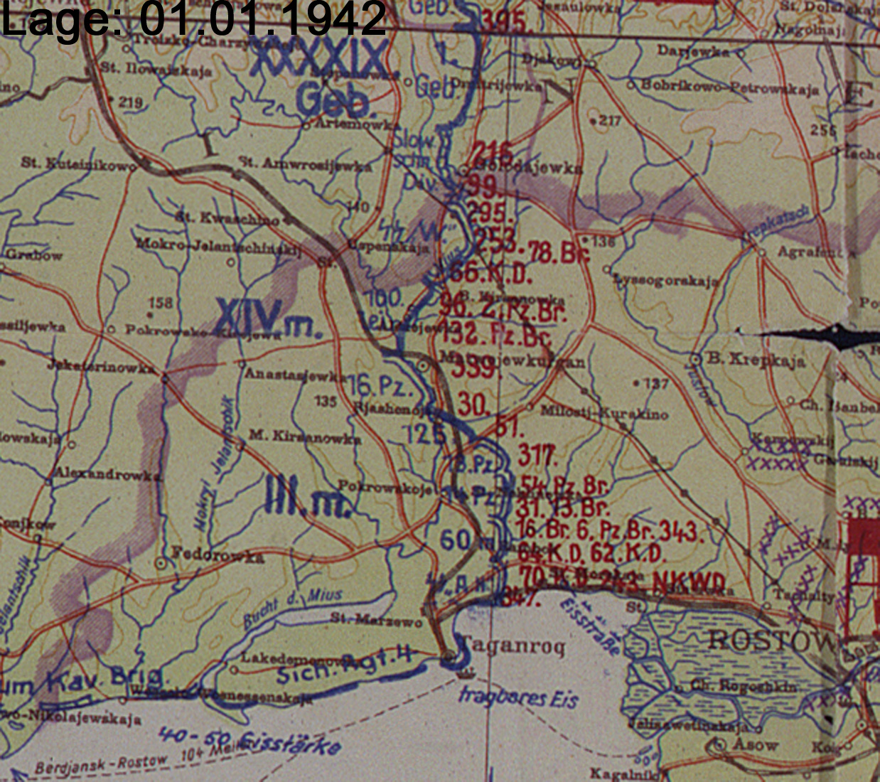 | 1.Januar | III | 1. Panzerarmee | Süd | Mius (Lagekarte) |