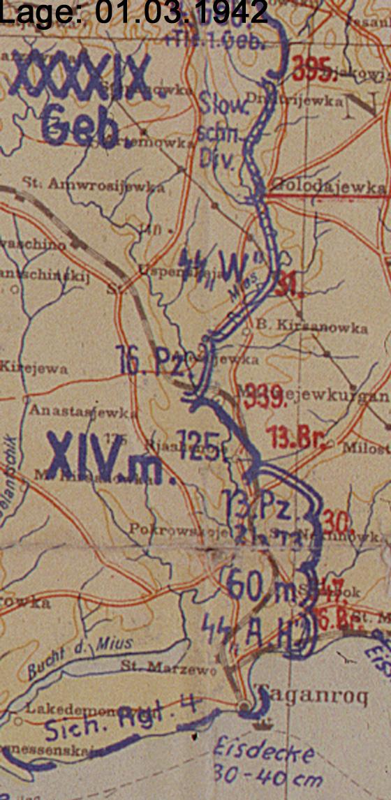 | 29. Januar | XIV | 1. Panzerarmee | Süd | Mius (Lagekarte) (Lagekarte) (Lagekarte) (Lagekarte) (Lagekarte) (Lagekarte) |