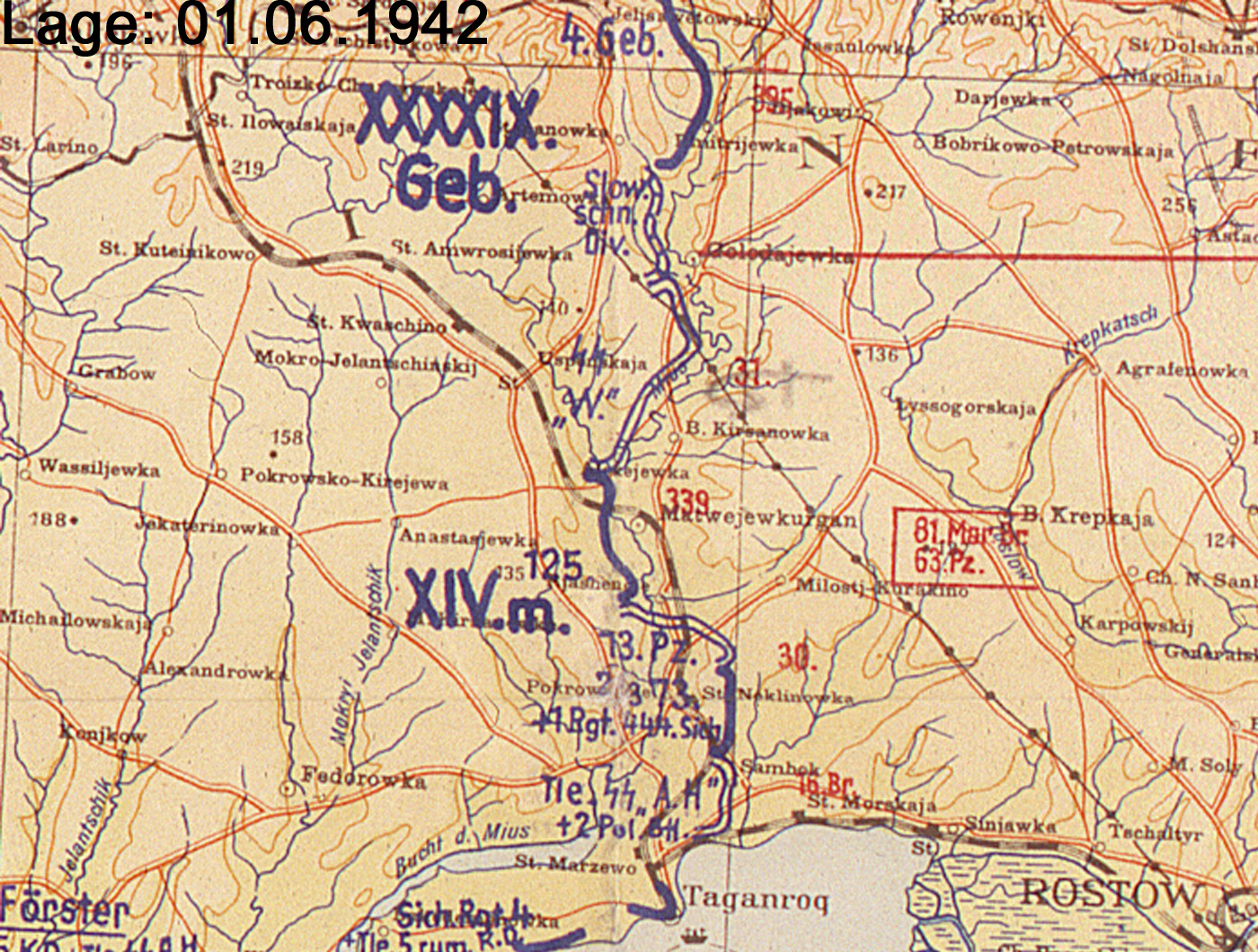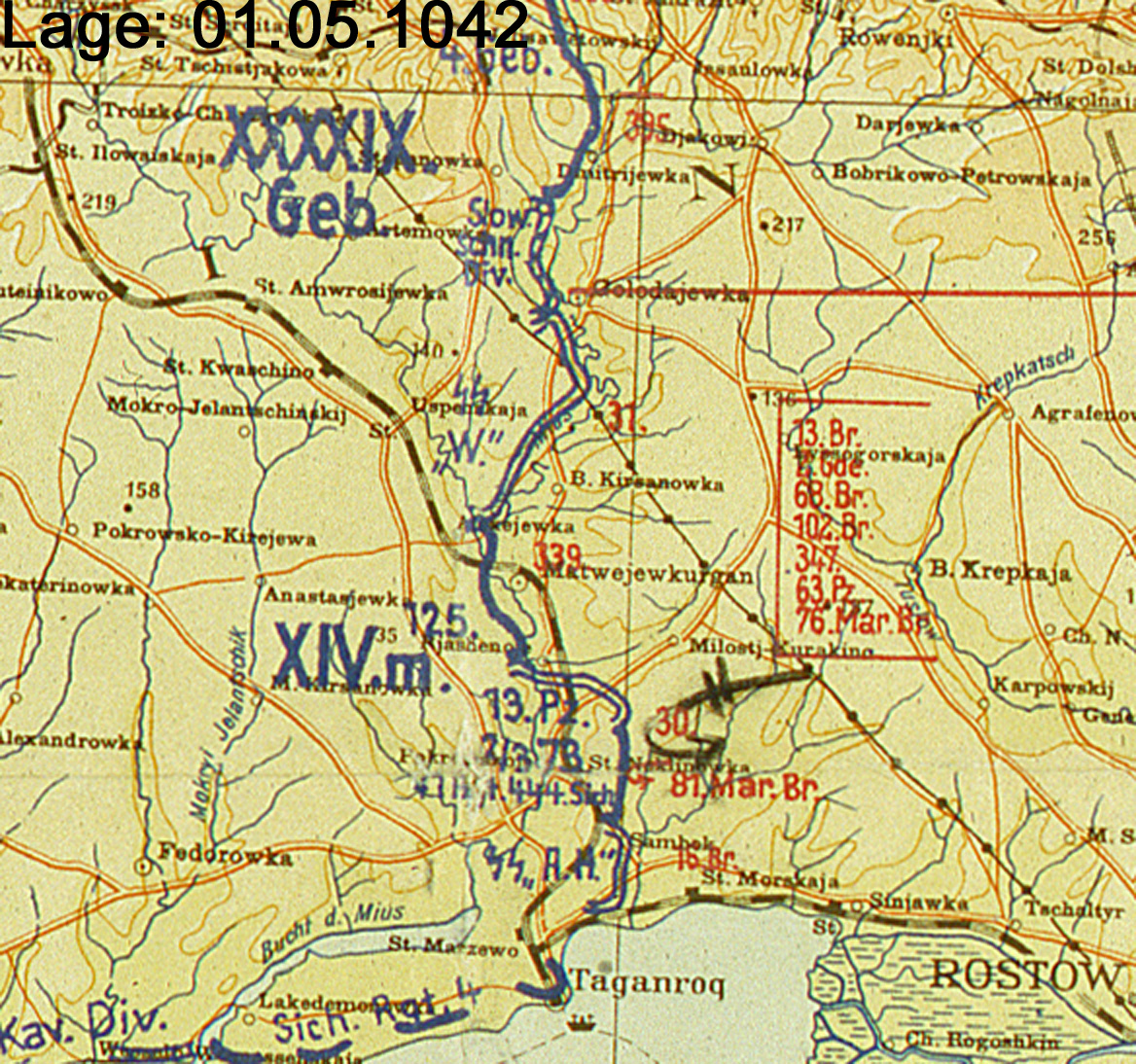 | 3. Mai | XXXIX | 17. Armee | A | Kuban (Tamman) (Lagekarte) (Lagekarte) |