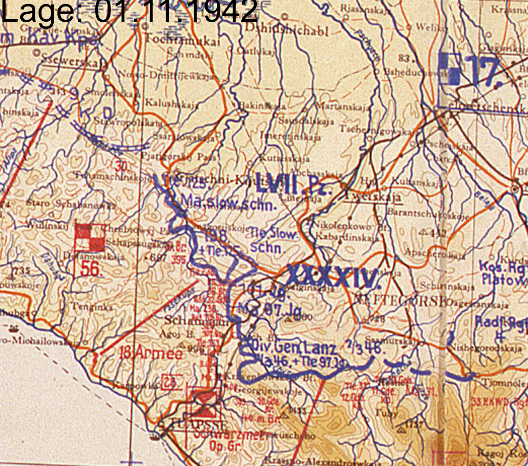 | 19. September | LVII | 17. Armee | A | Kaukasus (Lagekarte) (Lagekarte) |