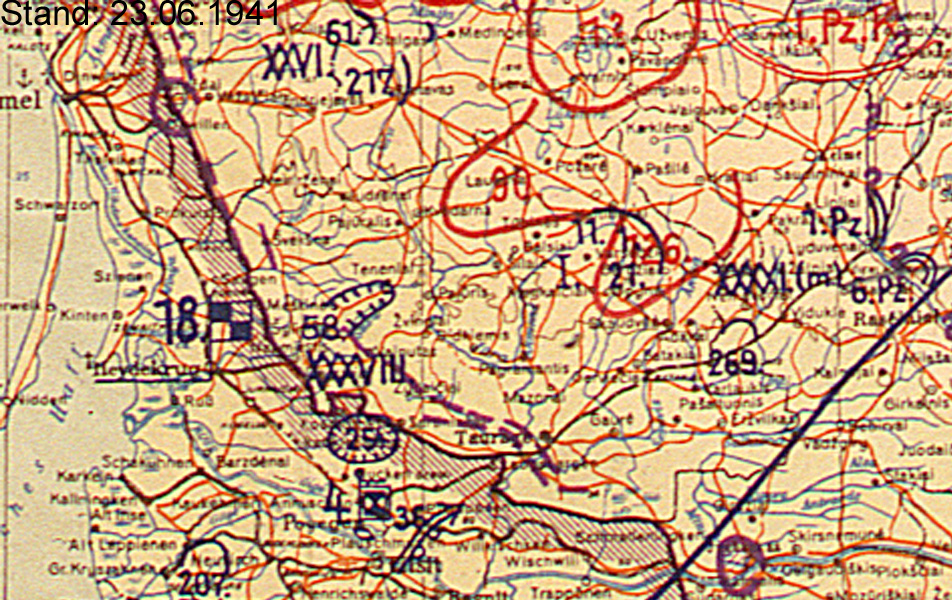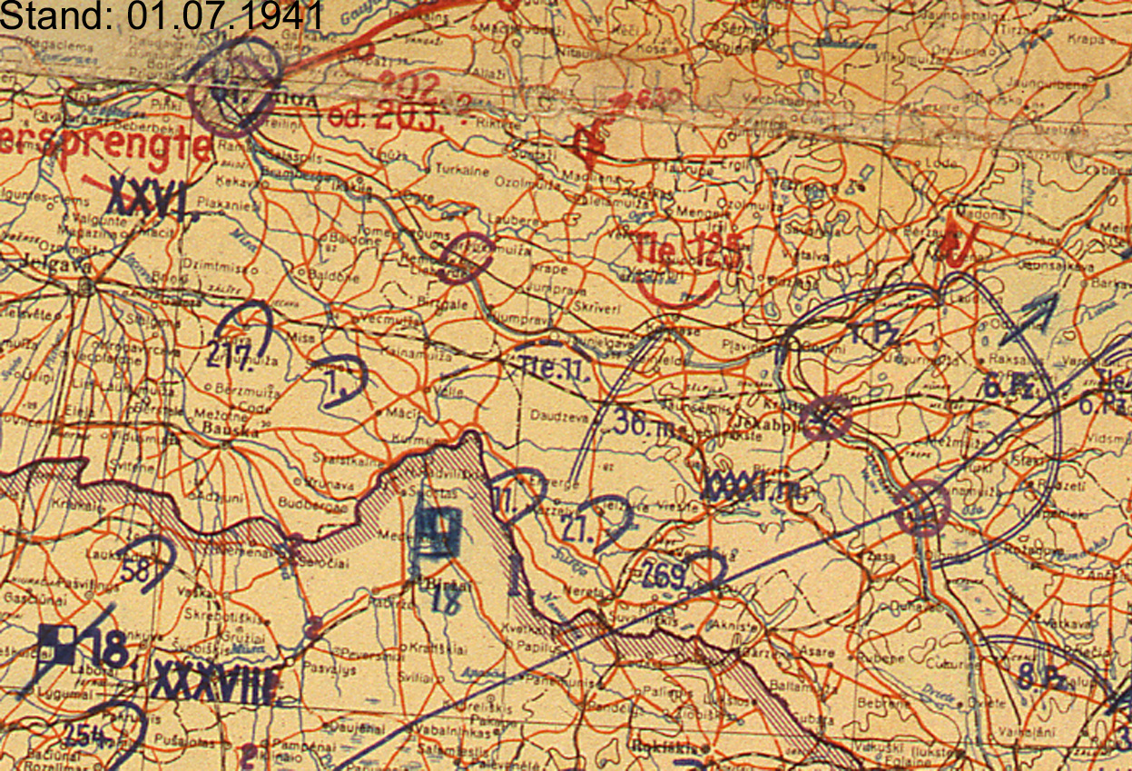 | Juni | XXXXI | 4. Panzergruppe | Nord | Pleskau (Lagekarte) (Lagekarte) |