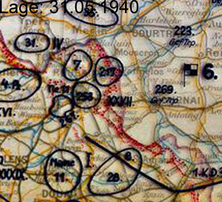 | Datum | Armeekorps | Armee | Heeresgruppe | Ort |