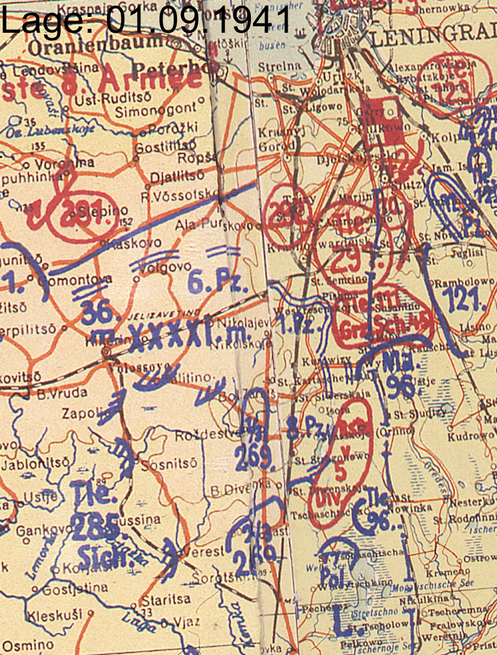 | August | LVI | 4. Panzergruppe | Nord | Leningrad (Lagekarte) |