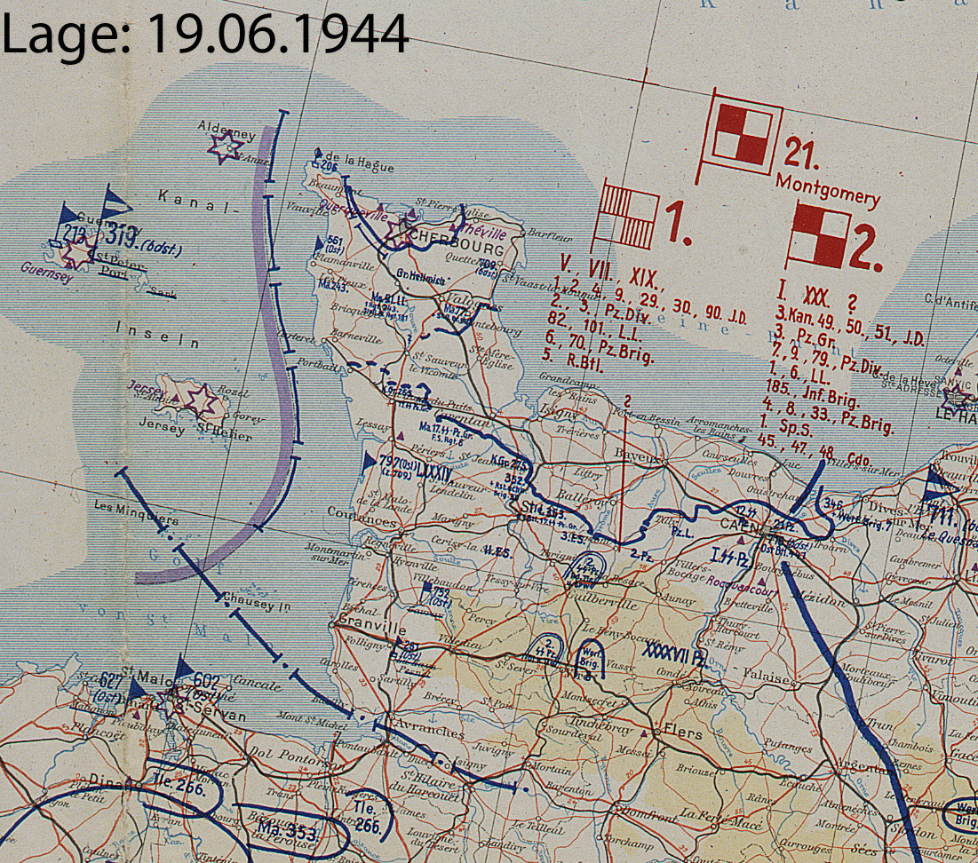 | Juli | LXXXVI | Panzergruppe West | B | Normandie (Lagekarte) (Lagekarte) |