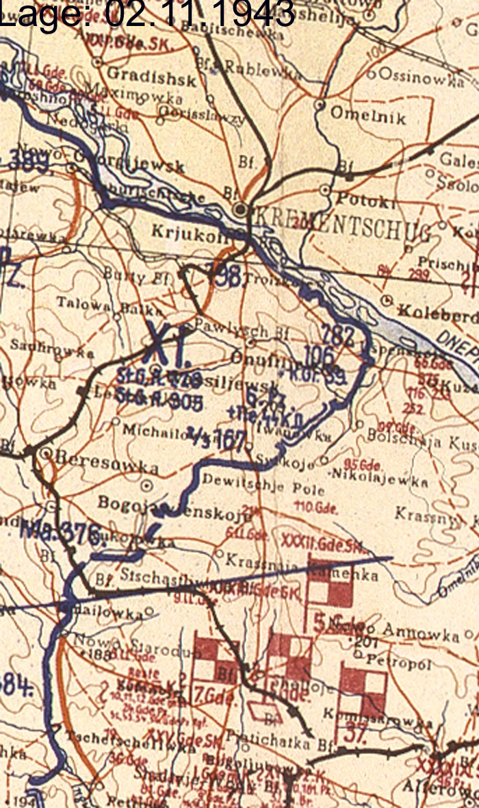 | Oktober | XXXXVII | 8. Armee | Süd | Dnjepr (Lagekarte) |