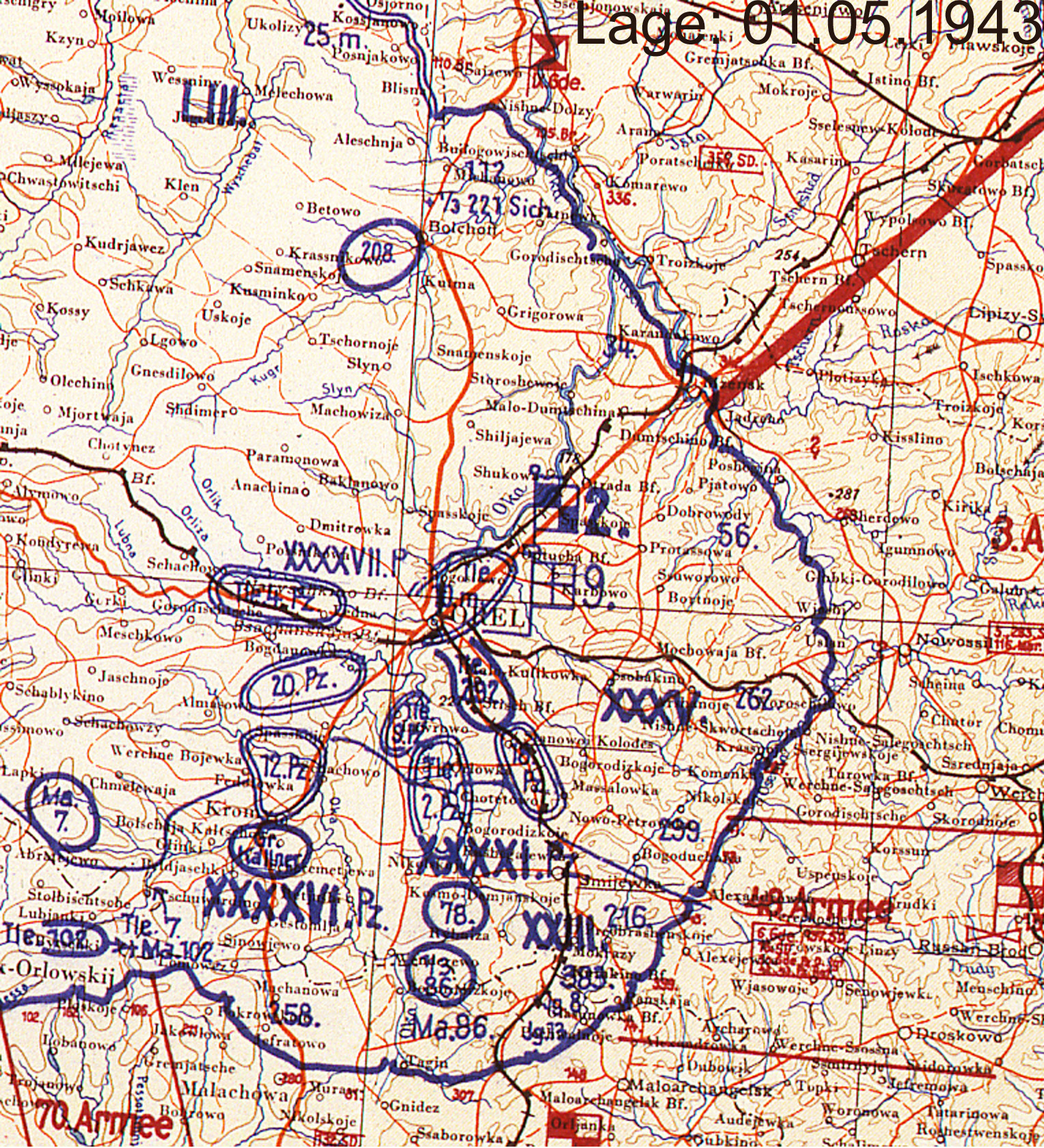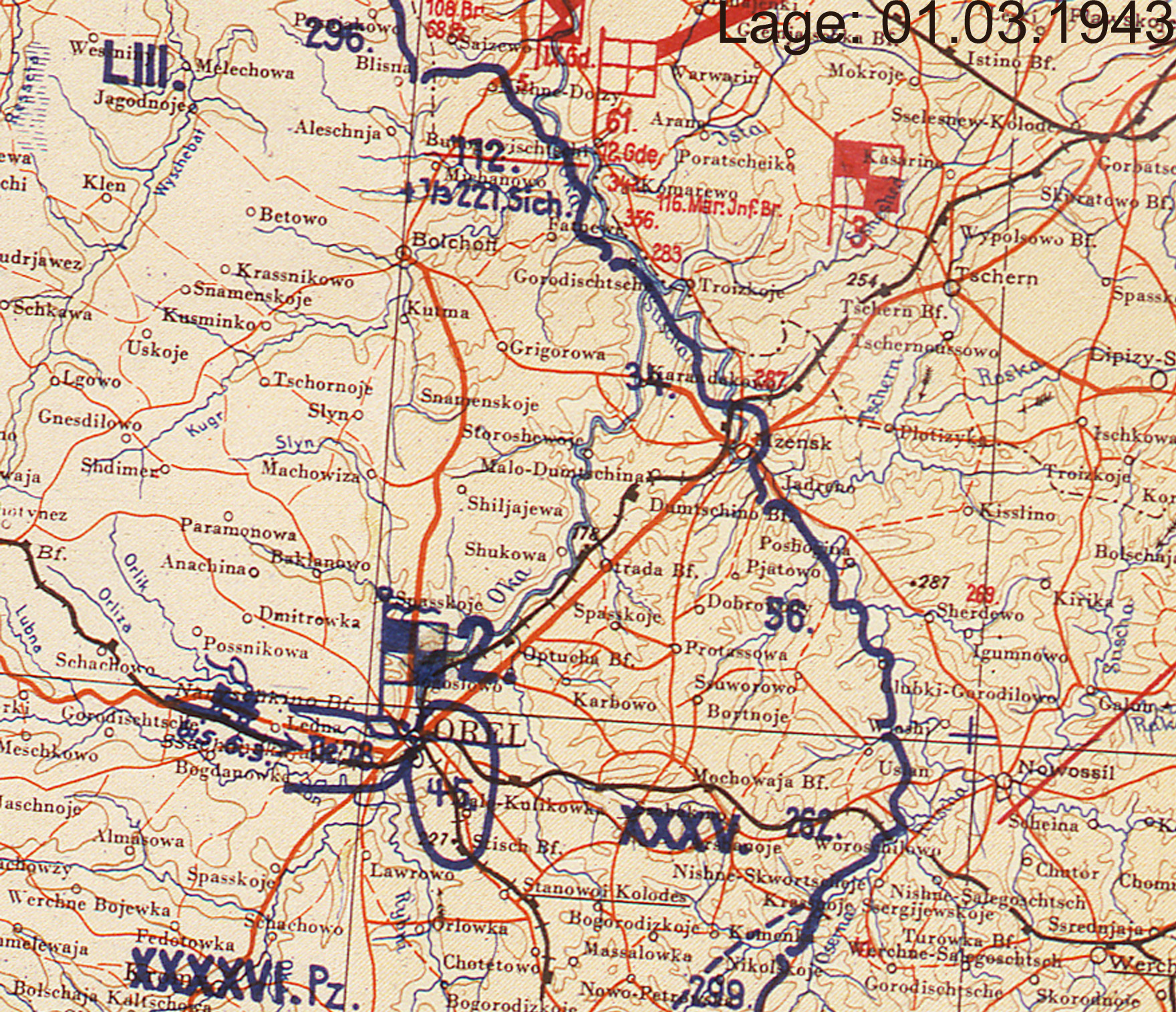 | Oktober | XXXV | 2. Panzerarmee | Mitte | Orel (Lagekarte) (Lagekarte) (Lagekarte) |