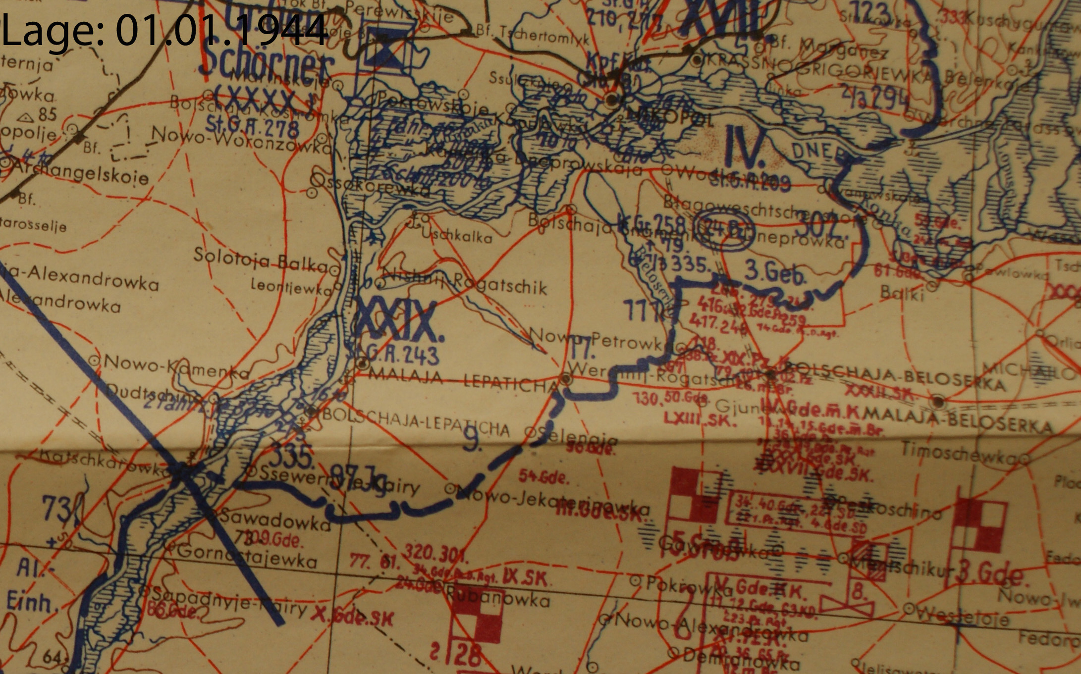 | Januar | XXIX | 6. Armee | Süd | Nikopol (Lagekarte) (Lagekarte) |