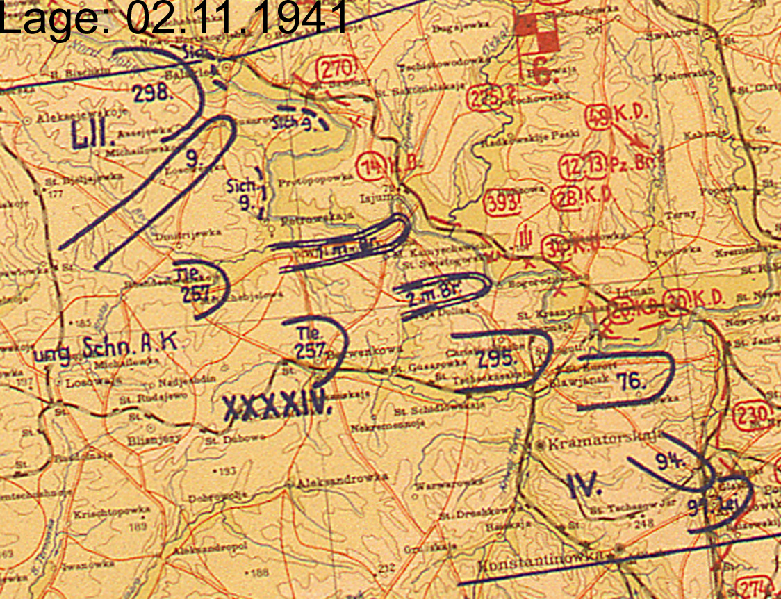| 15. Oktober | LII | 17. Armee | Süd | Poltava, Donez (Lagekarte) (Lagekarte) |