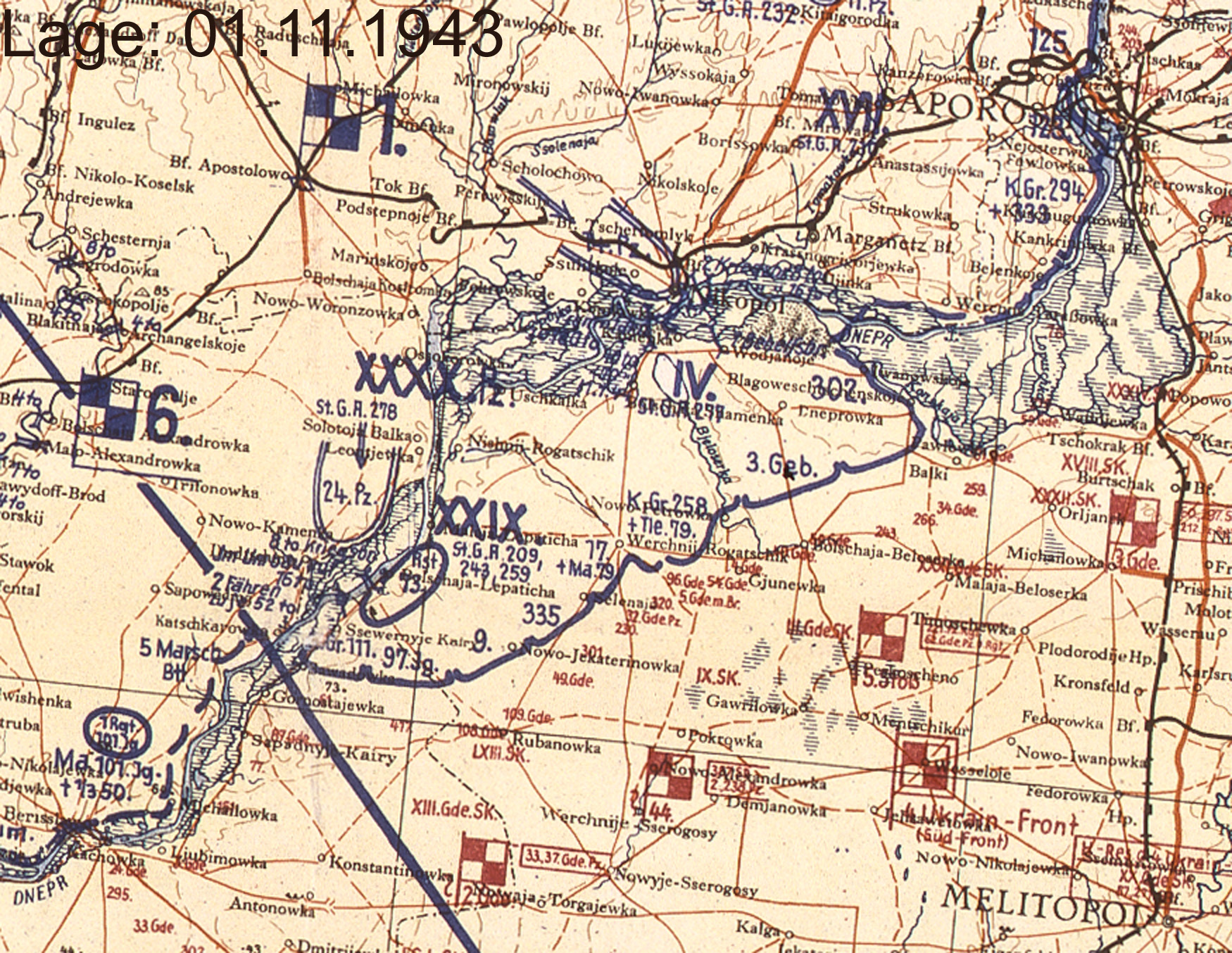 | Oktober | XXIX | 6. Armee | A | Melitopol (Lagekarte) |