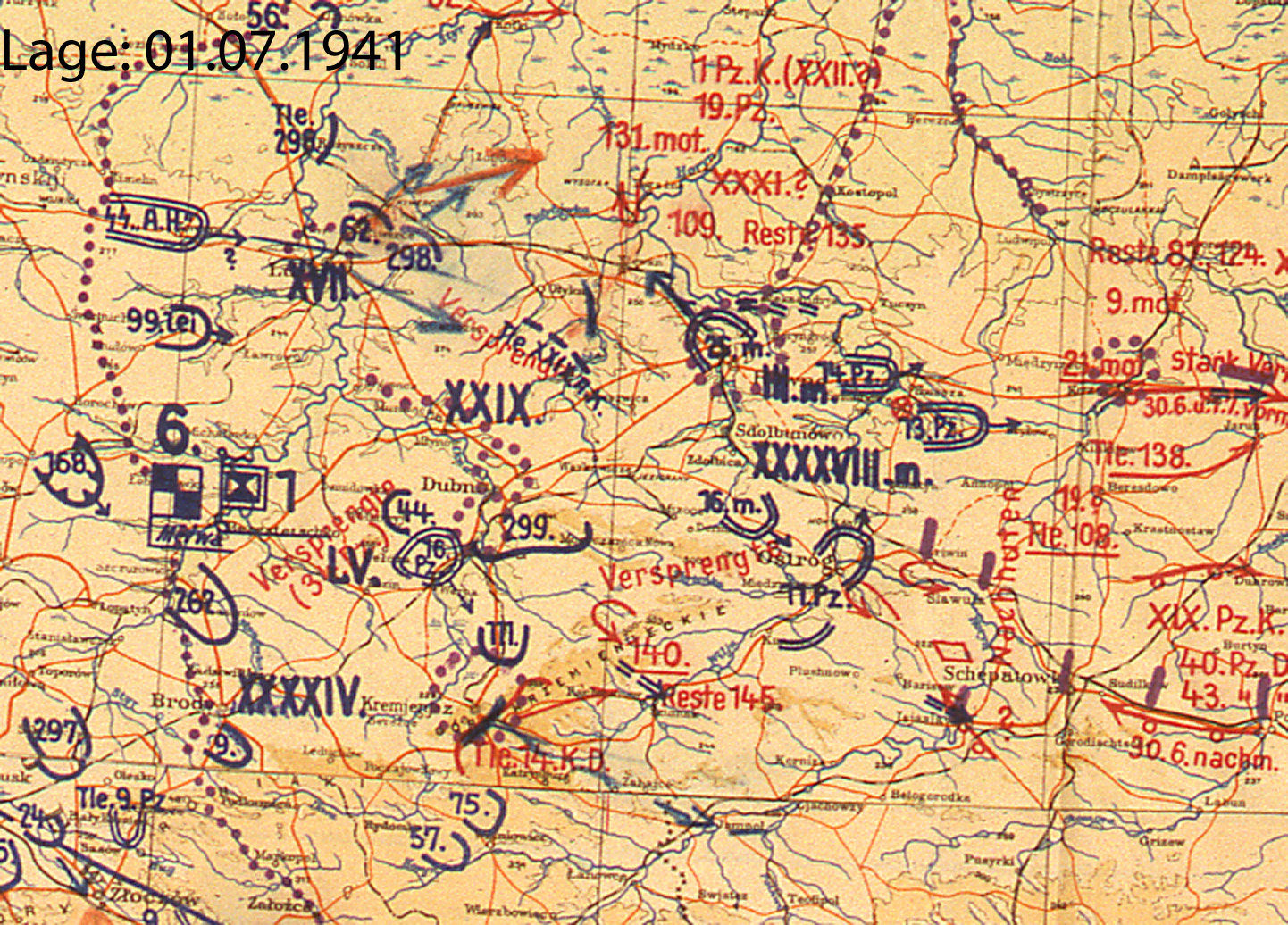 | 10. Juni | XXXXIV | 6. Armee | Süd | Shitomir (Lagekarte) (Lagekarte) |