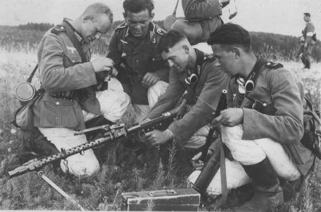 | Soldaten der 9. Kompanie. | Soldaten der 9. Kompanie bei der Ausbildung am MG 34. |