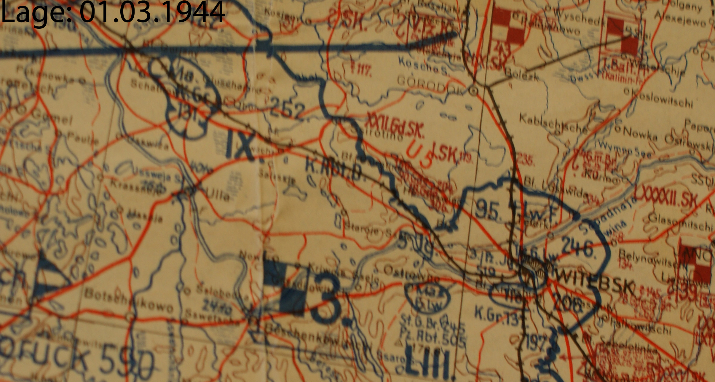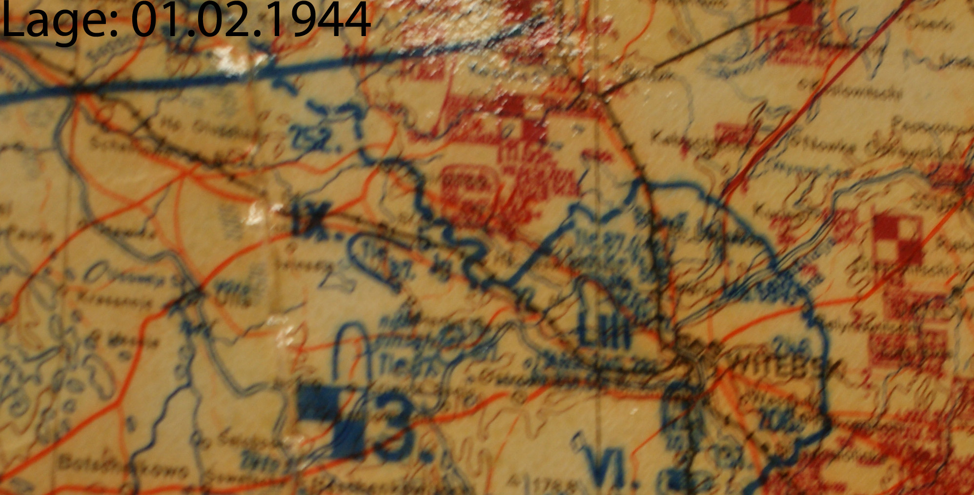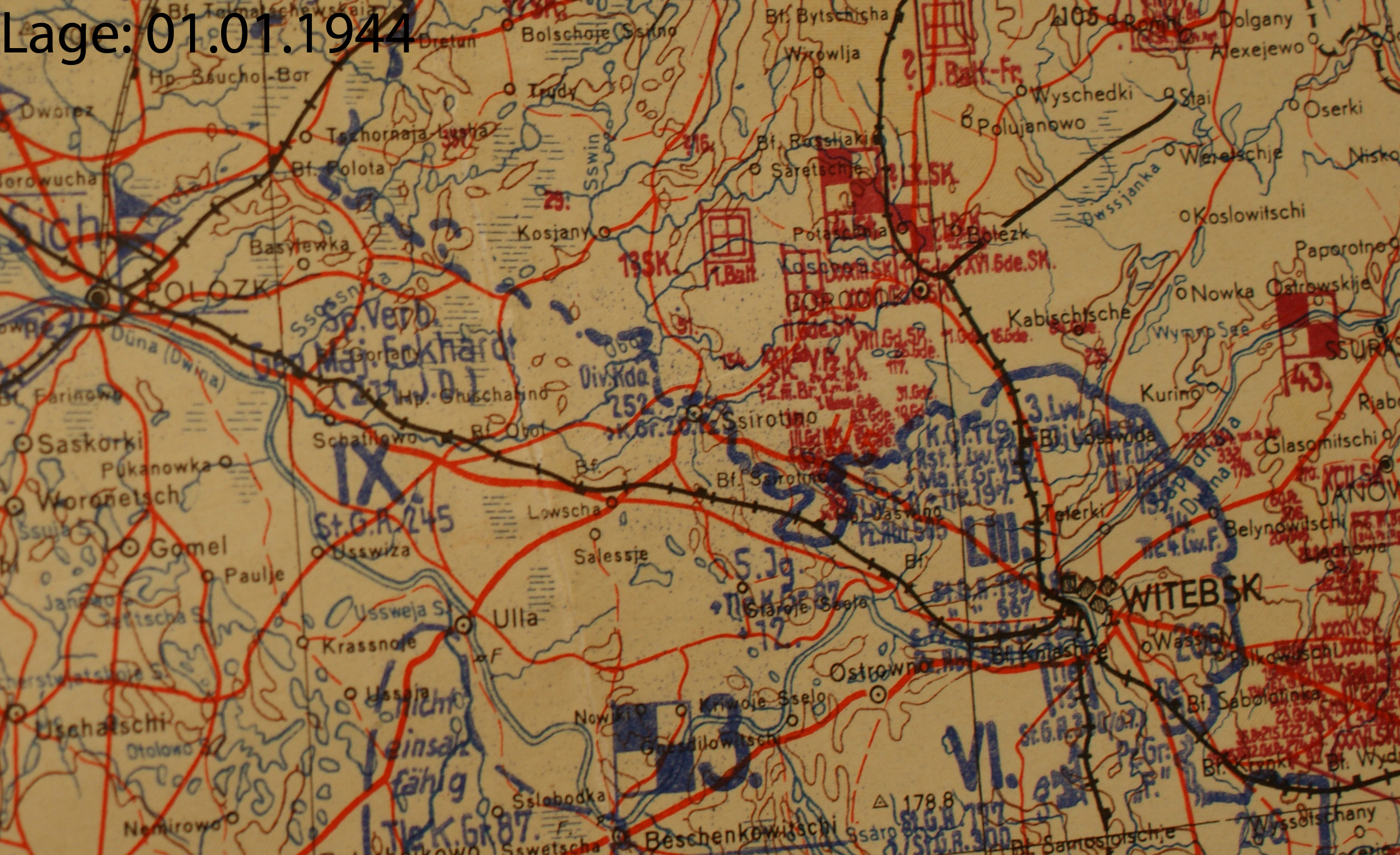| Januar | IX | 3. Pz. Armee | Mitte | Witebsk (Lagekarte) (Lagekarte) (Lagekarte) |
