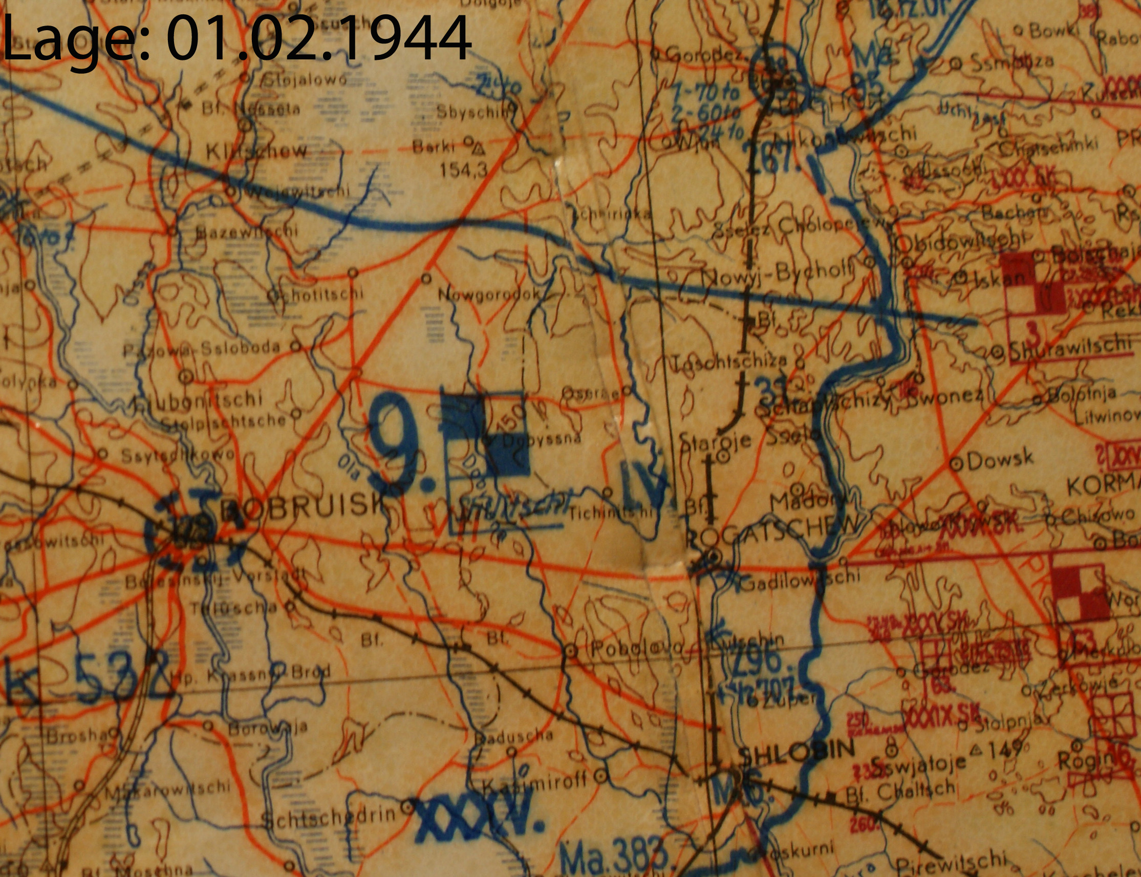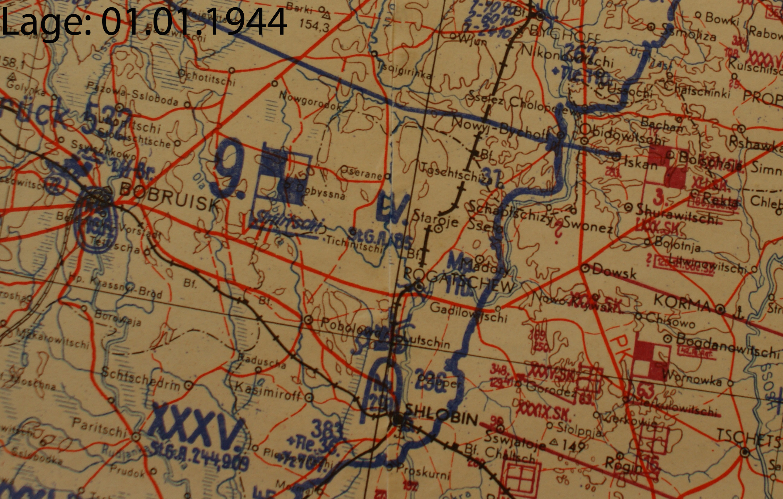 | 1. Januar | 9. Armee | Mitte | Bobruisk, Pripjet (Lagekarte) (Lagekarte) (Lagekarte) (Lagekarte) (Lagekarte) (Lagekarte) |