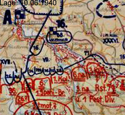 | 7. Infanterie-Division | Maschinengewehr-Bataillon 6 I. / Panzer-Regiment 25 Artillerie-Regiments-Stab z.b.V. 623 Stab / Pionier-Regiment 617 Brückenkolonne B 616 1. SS-Totenkopf-Verband "Oberbayern" |
