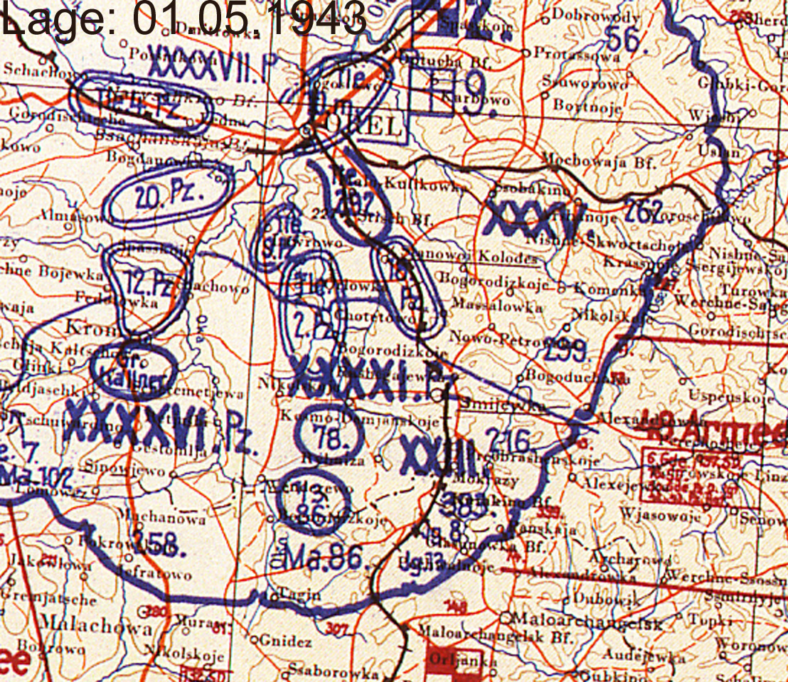 | Mai | 2. Panzerarmee | Mitte | Orel (Lagekarte) (Lagekarte) |