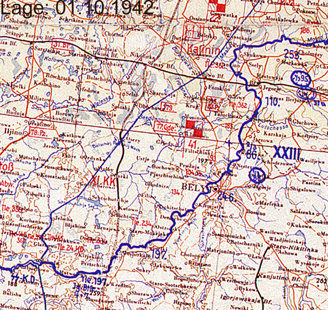 | August | 9. Armee | Mitte | Smolensk, Wjasma, Rshew (Lagekarte) (Lagekarte) (Lagekarte) (Lagekarte) (Lagekarte) |