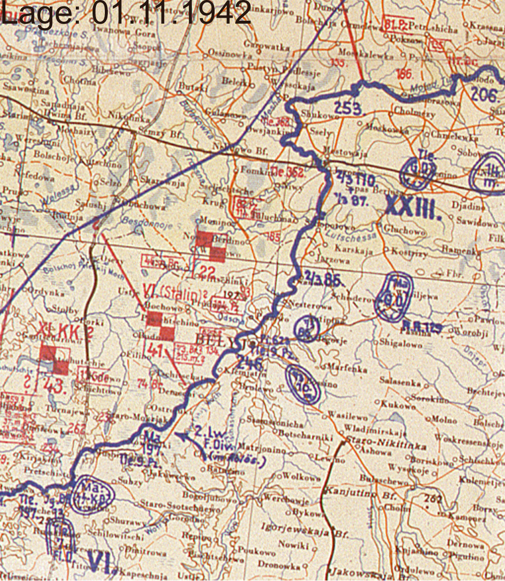 | Januar | 9. Armee | Mitte | Rshew (Lagekarte) (Lagekarte) (Lagekarte) |