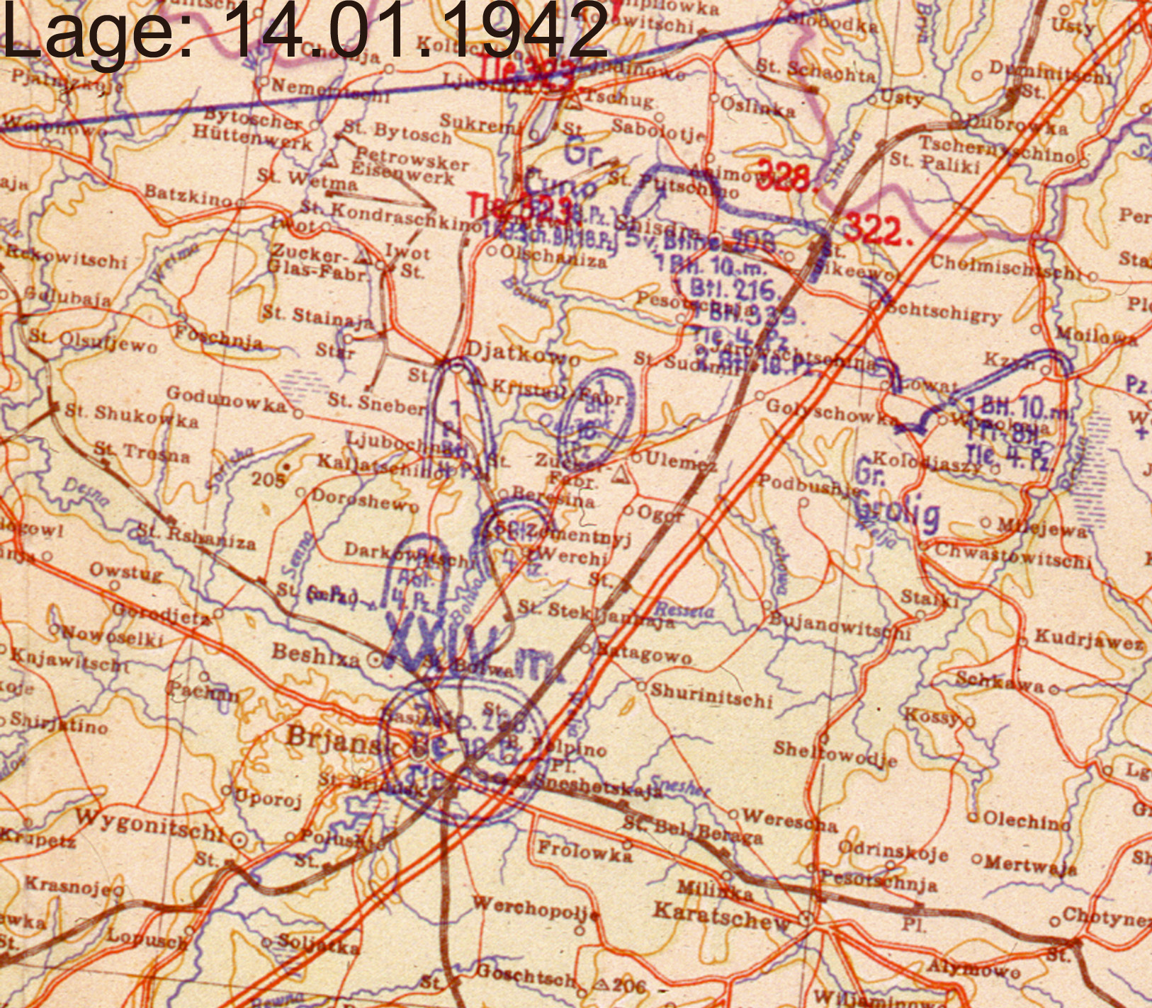 | 1. Januar | 2. Panzerarmee | Mitte | Brjansk (Lagekarte) (Lagekarte) (Lagekarte) (Lagekarte) |