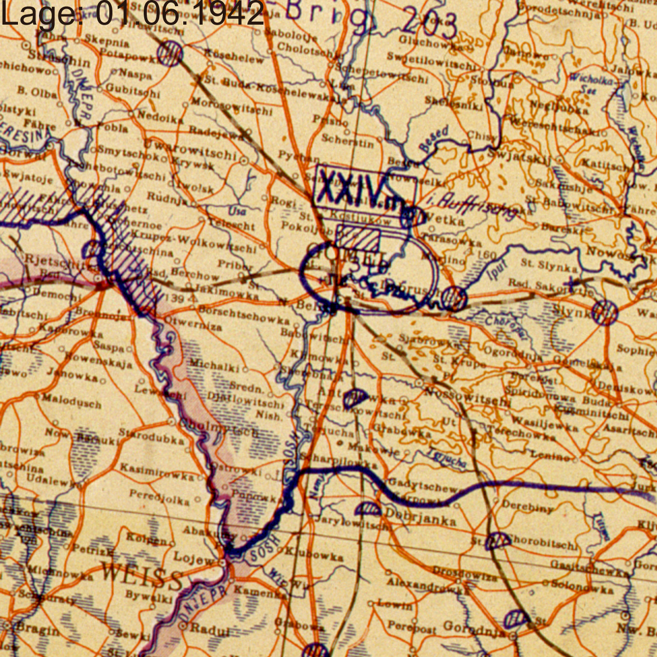 | 20. Juni | Panzergruppe 2 | Mitte | Minsk, Smolensk, Kiew, Brjansk, Tula (Lagekarte) (Lagekarte) (Lagekarte) (Lagekarte) (Lagekarte) |
