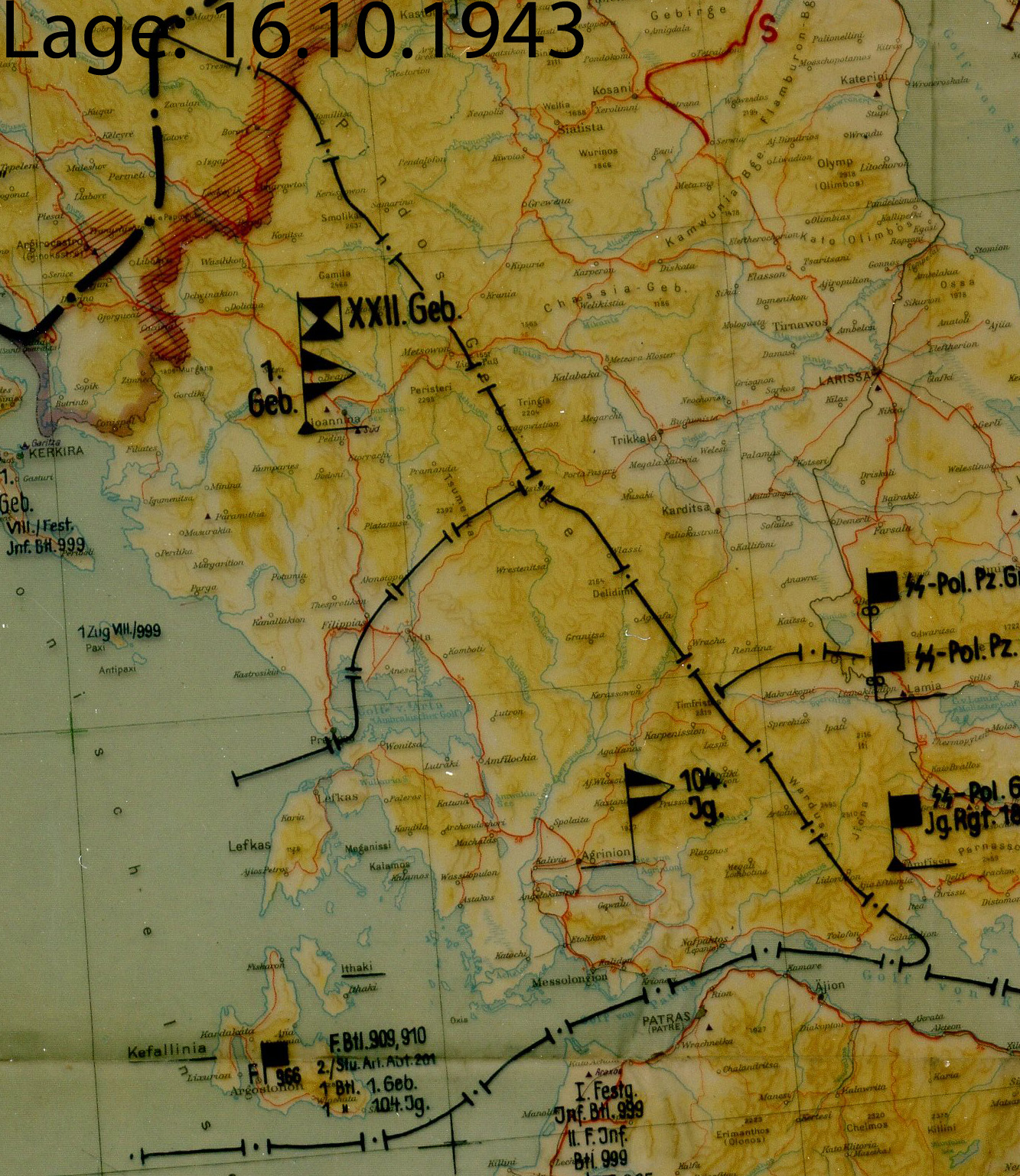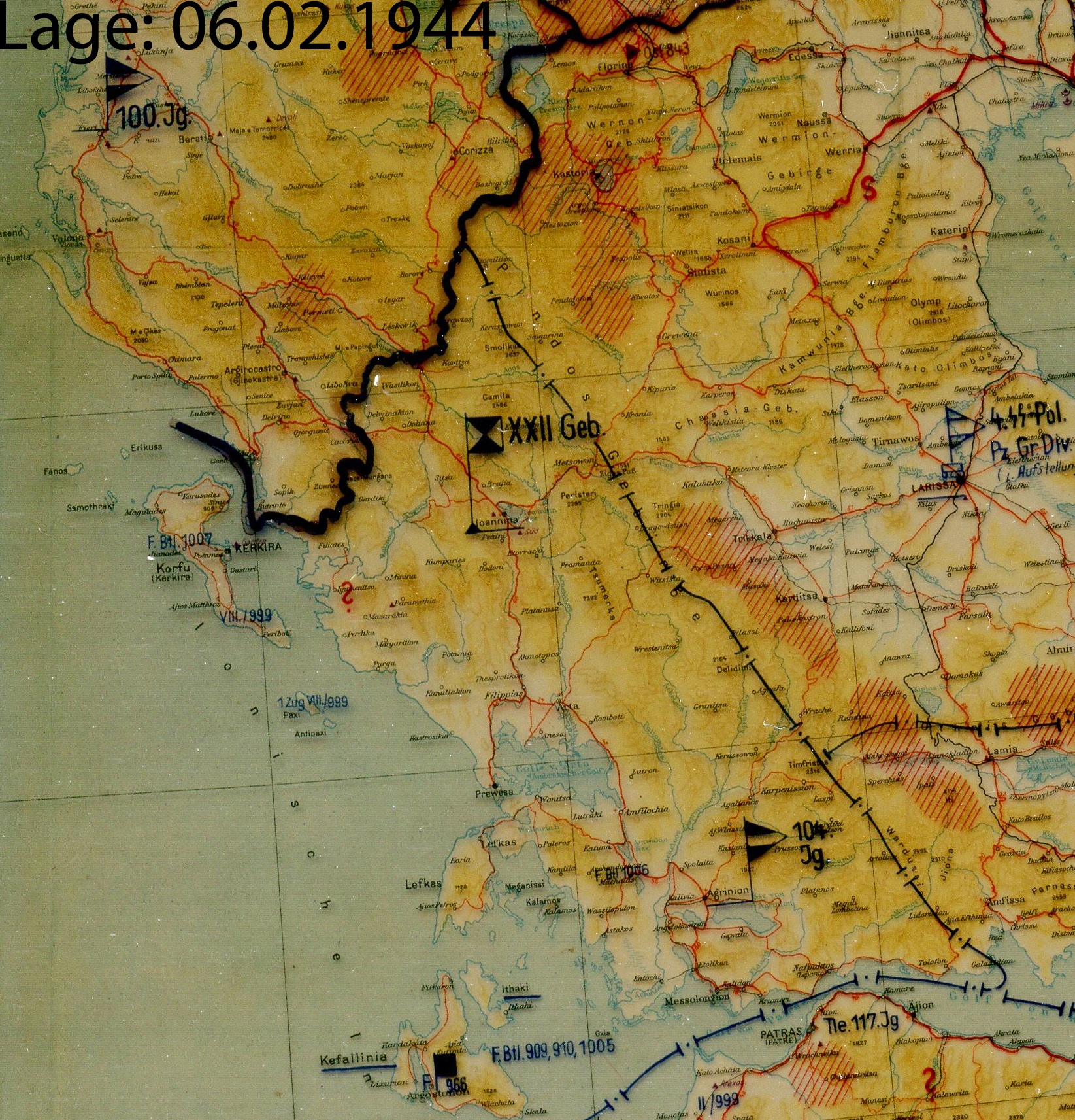 Festungs-Brigade 964 Festungs-Brigade 1017 (auf Insel Korfu) Festungs-Brigade 966 (auf Insel Kefalonia) Festungs-Bataillon 1003 Armenisches Bataillon 814 Flak-Abteilung 308 Frontaufklärungstrupp 377 III. / Festungs-Pionierstab 6 Brückenkolonne B 18 Pionier-Bataillon 659 |