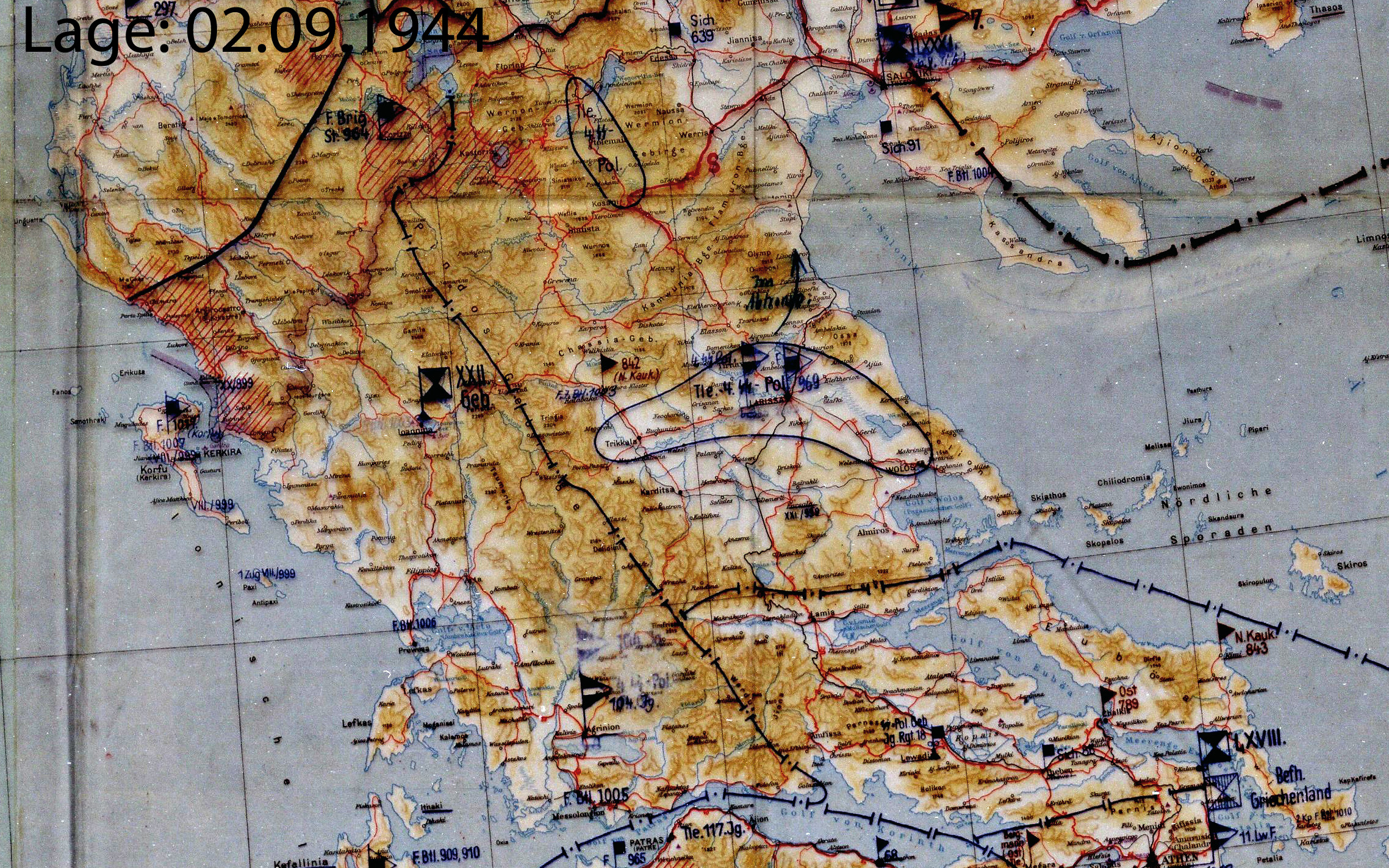 | 24. August | Heeresgruppe E | F | Griechenland (Lagekarte) (Lagekarte) (Lagekarte) (Lagekarte) |