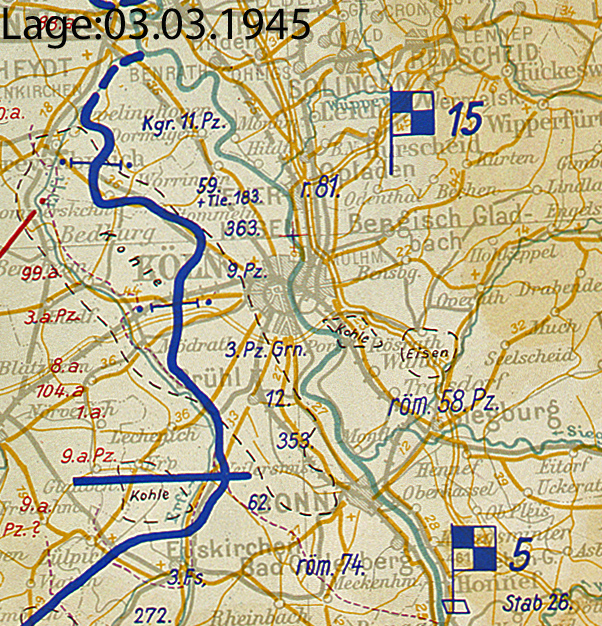 1. März 1945: 3. Panzer-Grenadier-Division, 12. Volks-Grenadier-Division, 353. Infanterie-Division