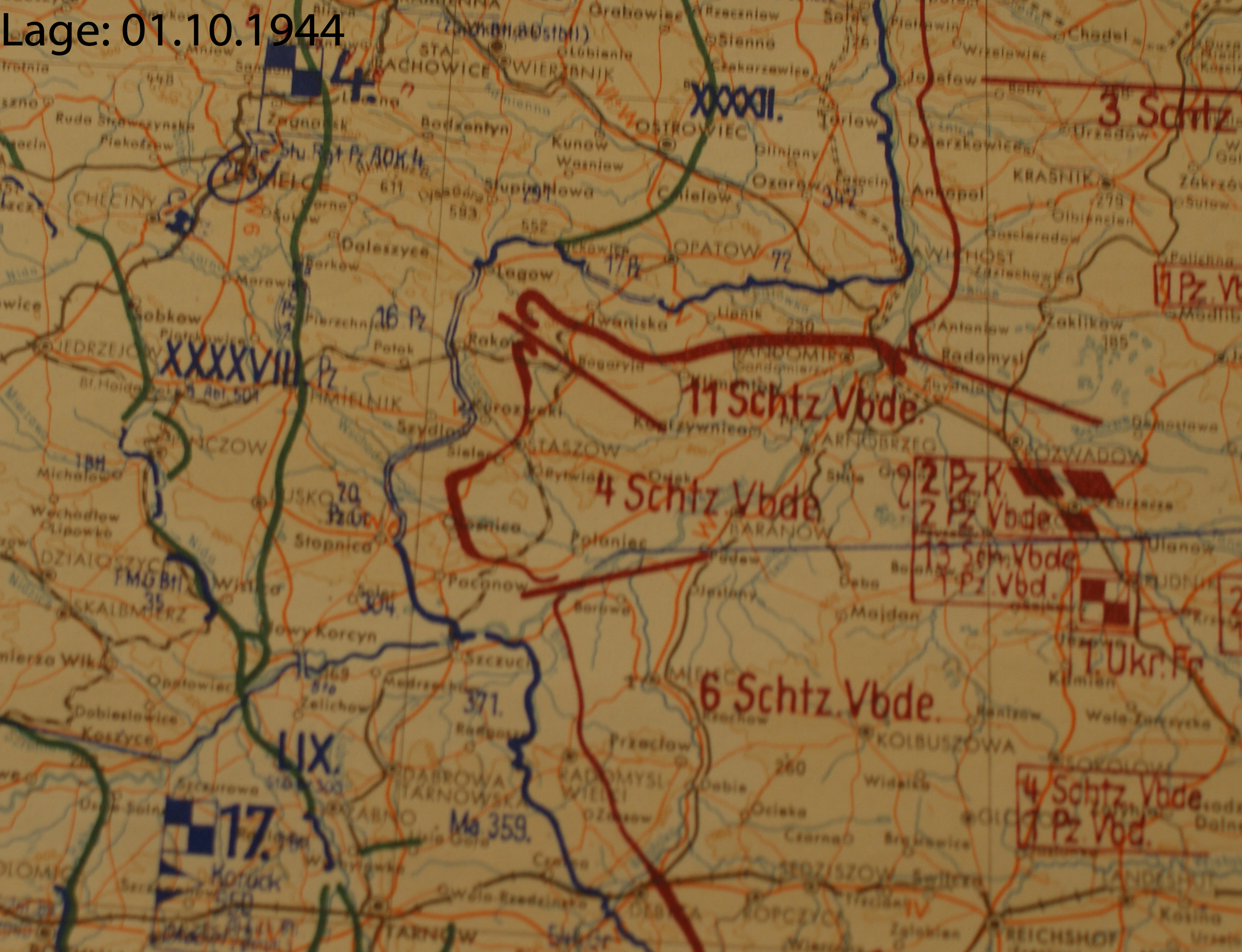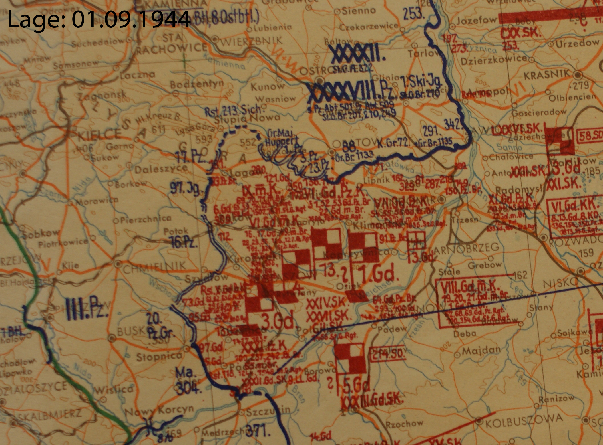 | Oktober | XXXXVIII Pz. | 4. Panzerarmee | A | Baranow, Weichsel (Lagekarte) (Lagekarte) |
