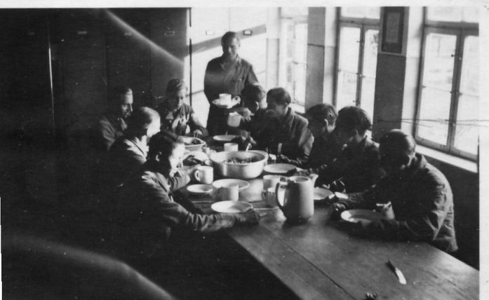 | Mittagessen in den Wohnbaracken |