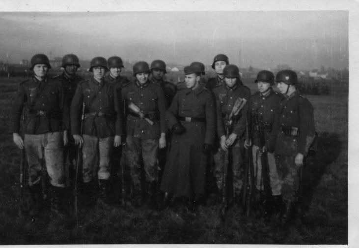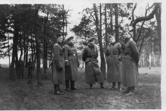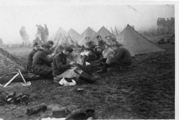 | Soldaten des Bataillons vor ihren Baracken |