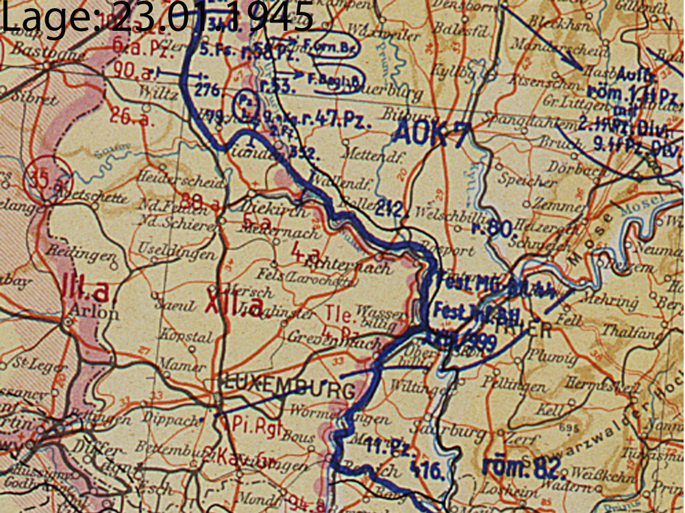 | Januar | LXXXV | 7. Armee | B | Ardennen (Lagekarte) |