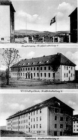 Die Kaserne wurde ca. ab 1935 an der heutigen Leinenweberstraße erbaut. Die Kaserne wurde als Heimat für die Kraftfahr-Abteilung 9 gebaut. Ein Name der Kaserne ist nicht bekannt. Zur Mobilmachung wurde die Abteilung aufgelöst und zur Bildung der Kraftfahr-Ersatz-Abteilung 9 verwendet. Nach dem Krieg wurde die Kaserne mit US-Truppen belegt. Die benannten die Kaserne zur "McPheeters-Kaserne" um. Heute befindet sich ein Gewerbepark auf dem Gelände der Kaserne.