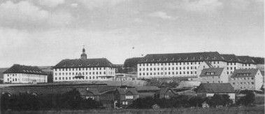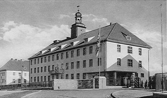 | Tor der Kaserne mit Verwaltungsgebäude von
