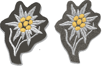 Links: Edelweiß-Abzeichen aus Metall Rechts: Edelweiß-Abzeichen aus Stoff