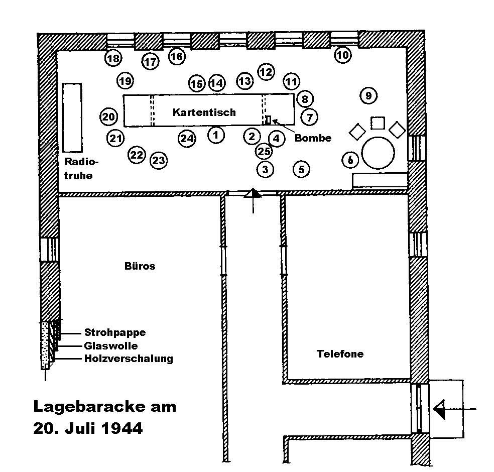 war die Lage aber in eine Baracke verlegt worden. Stauffenberg kam zu spät zur